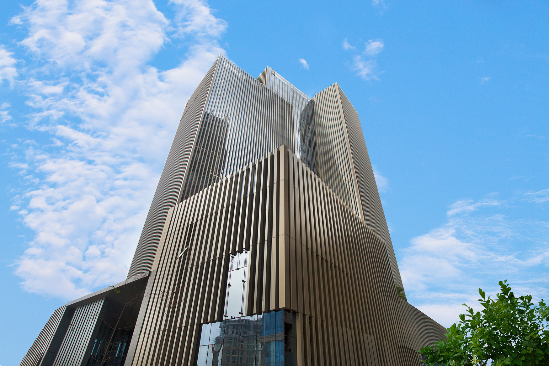 In a move to further customise the building's appearance, the ALUCORE® panels were developed in a Champagne Gold 77117 finish, a warm, sophisticated shade that adds depth and elegance to the tower's visual language.
